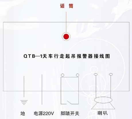 QTB―1天車行走起吊報警器系列產(chǎn)品是專門為天車設計的報警裝置,在天車行走、起吊時發(fā)出聲光報警信號,增強生產(chǎn)人員的安全意識。當天車運行或起吊機構(gòu)起動時,通過外部繼電器觸點接通裝置,使閃光燈發(fā)出旋轉(zhuǎn)紅光,揚聲器發(fā)出報警聲響,以提示生產(chǎn)人員。天車在行走起吊或靜止時,按住送話器的開關(guān),司機可以對外喊話。該裝置由AC220V電源輸入,有兩組可選的開關(guān)量輸入,一組16歐15-25瓦揚聲器,詳細原理框圖請參閱附錄。